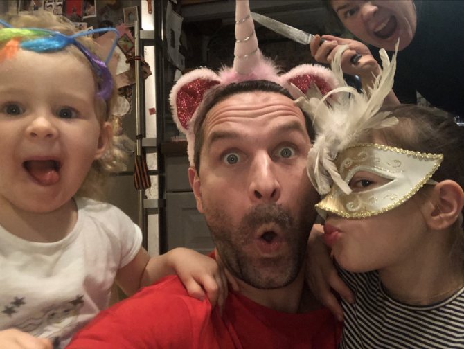 — Обычно мы много путешествуем. Сейчас мы на даче и катаемся на велосипедах, гуляем. Зимой катаемся на лыжах, и я очень счастлив, потому что моя младшая встала на лыжи в 3 года, а я в 33!